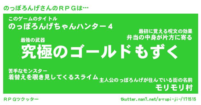 | 男性向けラノベタイトル風あだ名 | 『のっぽろんげの憂鬱』 |