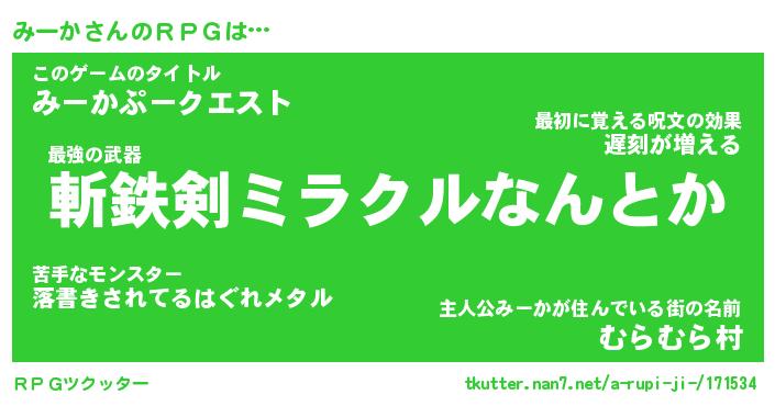 | ファンタジー風あだ名 | 『ミーフェル』『エターナルミーカー』 |