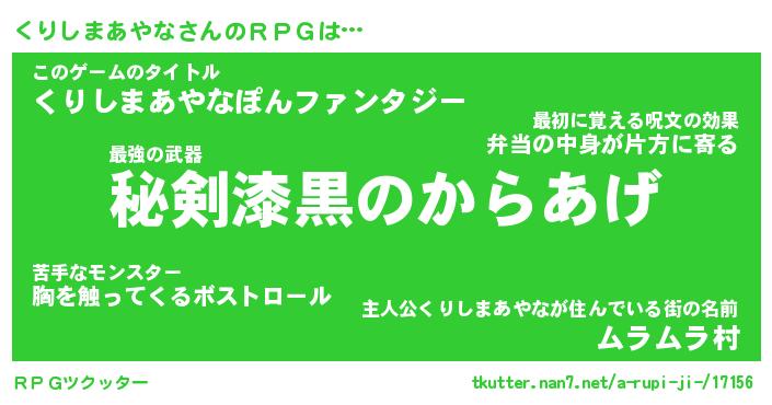 | 伝説のあだ名 | 『不死鳥のスナイパーくりしまあやな』 |