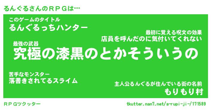 | 男性向けラノベタイトル風あだ名 | 『るんぐるの憂鬱』 |