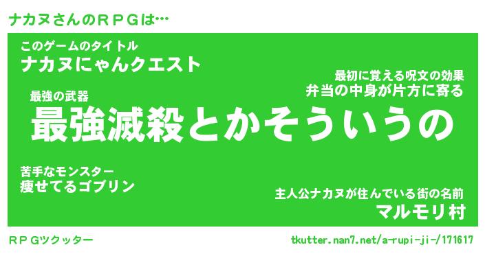 | 胡散臭い通販商品みたいなあだ名 | 『モテモテ間違いなし霊験あらたかなお札…その名も「ナカヌ」』 |