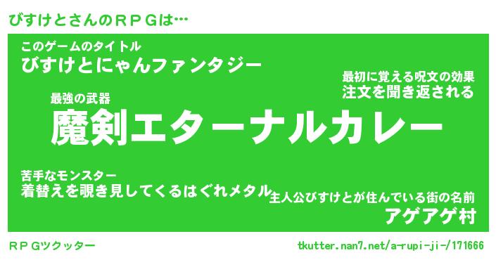| ファンタジー風あだ名 | 『ビスフェル』『エターナルビスケトー』 |