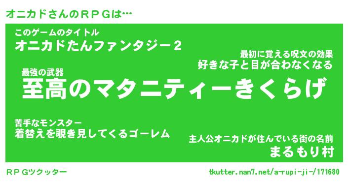 | 胡散臭い通販商品みたいなあだ名 | 『モテモテ間違いなし霊験あらたかなお札…その名も「オニカド」』 |