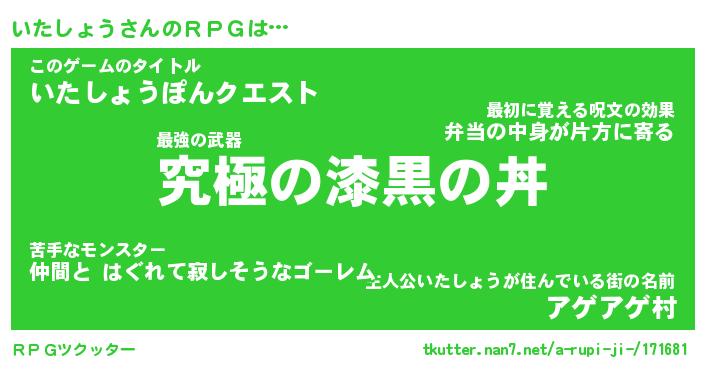 | 料理風あだ名 | 『節約★いたしょうと油揚げの玉子丼』 |