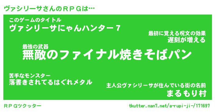 | 男性向けラノベタイトル風あだ名 | 『ヴァシリーサアートオンライン』 |