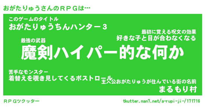 | 男性向けラノベタイトル風あだ名 | 『おがたりゅうの憂鬱』 |