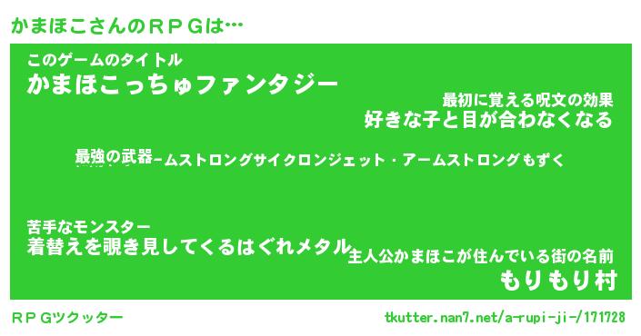 | ファンタジー風あだ名 | 『カマフェル』『エターナルカマホコー』 |