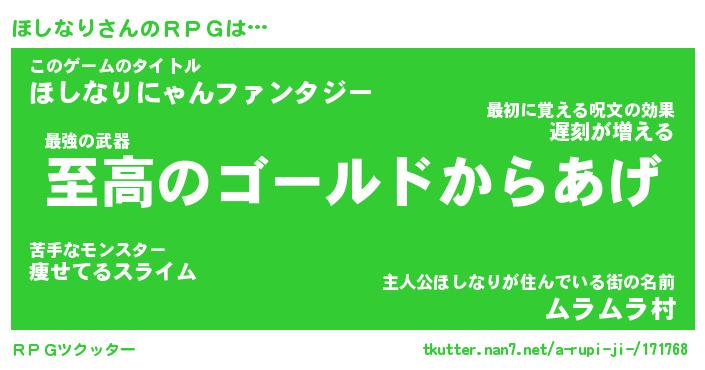 | ファンタジー風あだ名 | 『ホシフェル』『エターナルホシナリー』 |