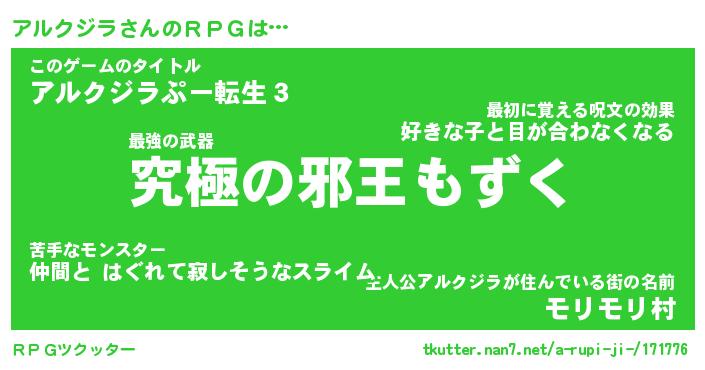 | 男性向けラノベタイトル風あだ名 | 『アルクジラアートオンライン』 |