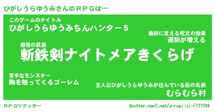 | 伝説のあだ名 | 『伝説のスナイパーひがしうらゆうみ』 |