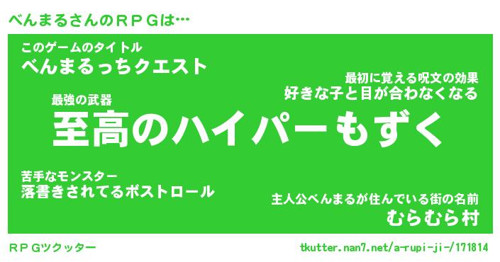 | 男性向けラノベタイトル風あだ名 | 『ベンマルアートオンライン』 |