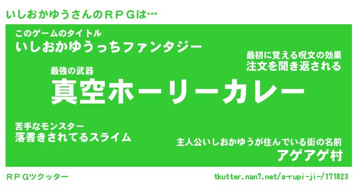| 男性向けラノベタイトル風あだ名 | 『イシオカユウアートオンライン』 |