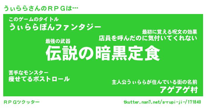 | 料理風あだ名 | 『節約★うぃららと油揚げの玉子丼』 |