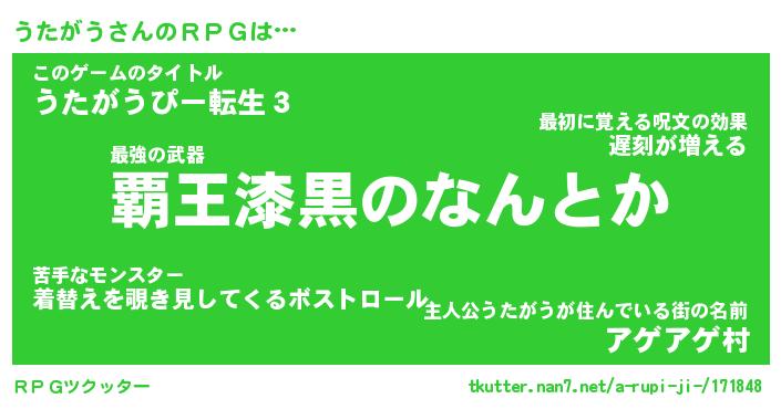 | 伝説のあだ名 | 『封印されしスナイパーうたがう』 |