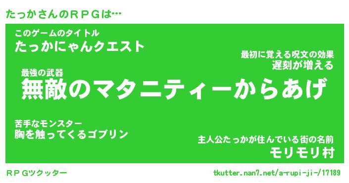 | ファンタジー風あだ名 | 『タッフェル』『エターナルタッカー』 |