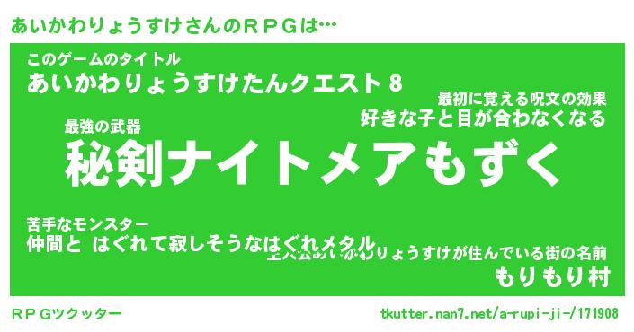| 男性向けラノベタイトル風あだ名 | 『あいかわりょうすけの憂鬱』 |