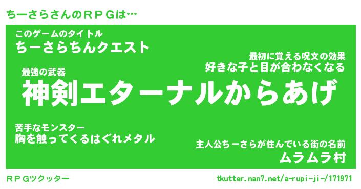 | ファンタジー風あだ名 | 『チーフェル』『エターナルチーサラー』 |