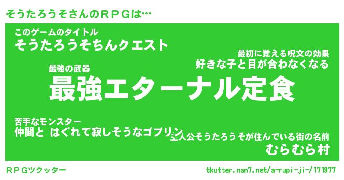 | 胡散臭い通販商品みたいなあだ名 | 『モテモテ間違いなし水晶球…その名も「そうたろうそ」』 |