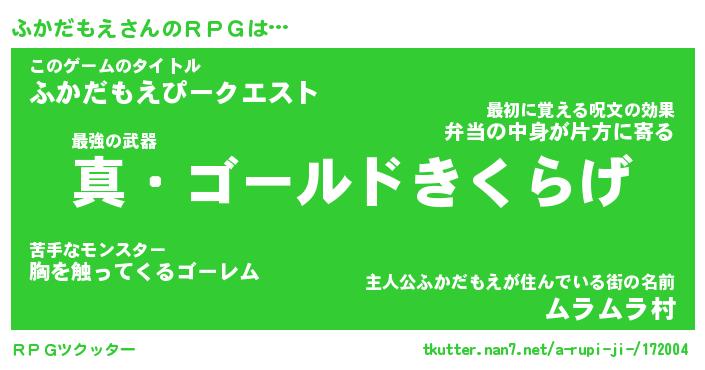 | 男性向けラノベタイトル風あだ名 | 『フカダモエアートオンライン』 |
