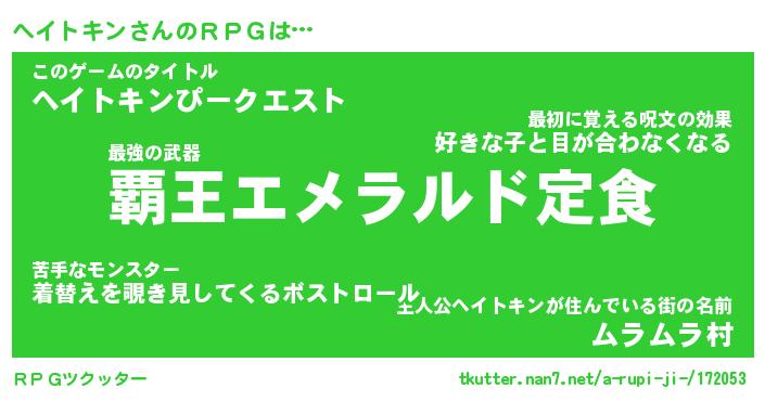 | ファンタジー風あだ名 | 『ヘイフェル』『エターナルヘイトキンー』 |