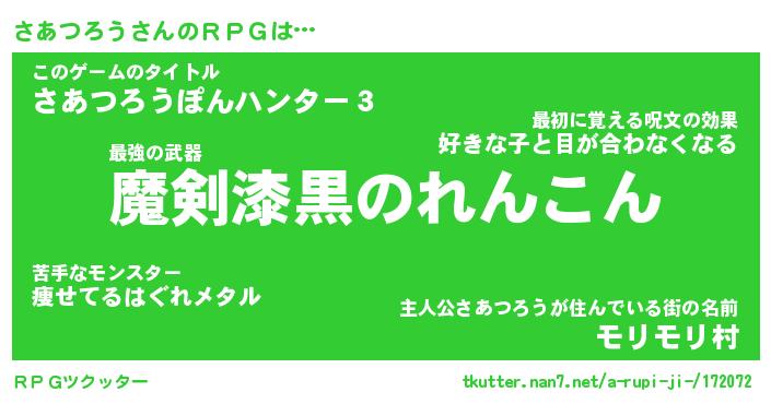 | 男性向けラノベタイトル風あだ名 | 『さあつろうの憂鬱』 |