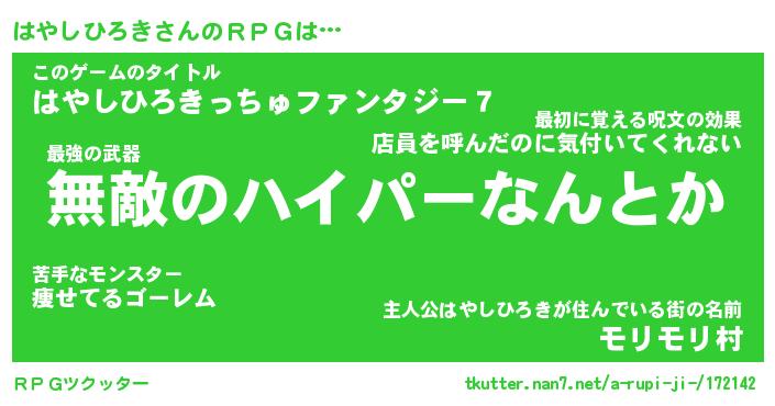 | 男性向けラノベタイトル風あだ名 | 『ハヤシヒロキアートオンライン』 |