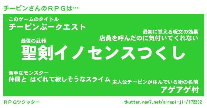 | ファンタジー風あだ名 | 『チーフェル』『エターナルチーピンー』 |