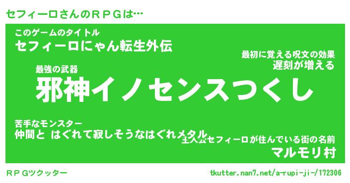 | 伝説のあだ名 | 『封印されしスナイパーセフィーロ』 |