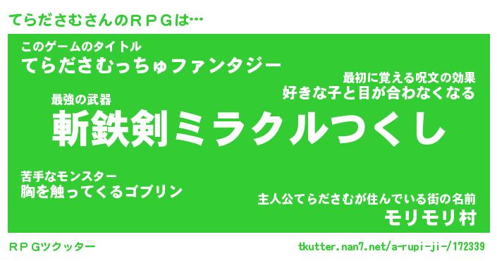 | 伝説のあだ名 | 『伝説の竜騎士てらださむ』 |