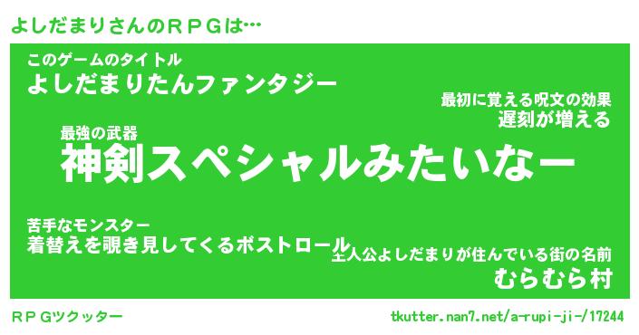 | ファンタジー風あだ名 | 『ヨシフェル』『エターナルヨシダマリー』 |