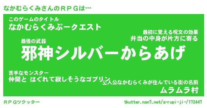 | 男性向けラノベタイトル風あだ名 | 『ナカムラクミアートオンライン』 |