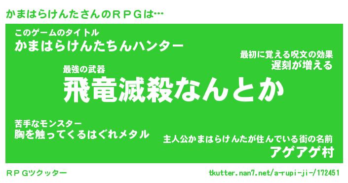 | 男性向けラノベタイトル風あだ名 | 『カマハラケンタアートオンライン』 |