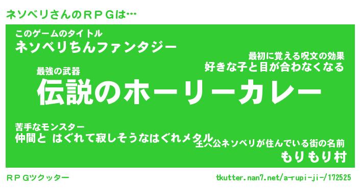 | 男性向けラノベタイトル風あだ名 | 『ネソベリの憂鬱』 |