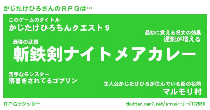 | 胡散臭い通販商品みたいなあだ名 | 『必ず成功する霊験あらたかなお札…その名も「かじたけひろ」』 |
