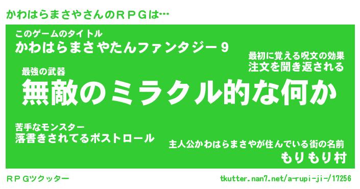 | 伝説のあだ名 | 『封印されし竜騎士かわはらまさや』 |