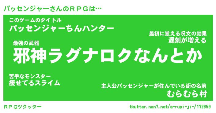 | 男性向けラノベタイトル風あだ名 | 『パッセンジャーアートオンライン』 |