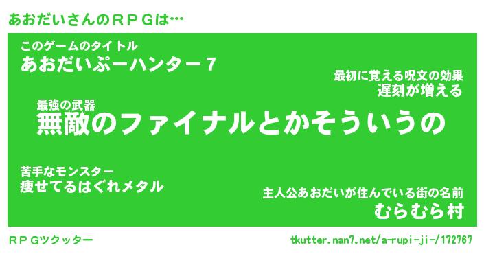 | ツイッター | あおだいさんのツイッターID『dendenmushi_star』 |