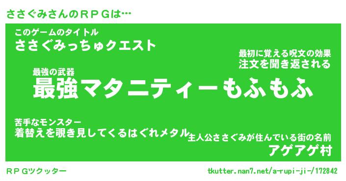 | 男性向けラノベタイトル風あだ名 | 『ササグミアートオンライン』 |
