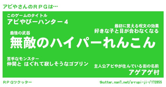| 意味不明あだ名 | 『ペロリンアビや』『アビやフォーエバー』 |