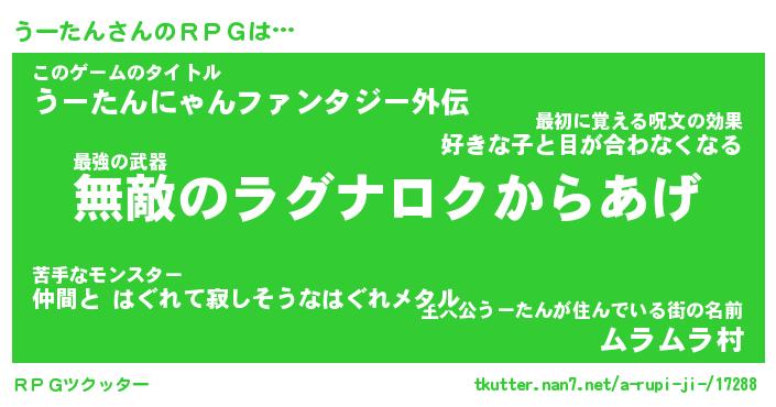 | ファンタジー風あだ名 | 『ウーフェル』『エターナルウータンー』 |