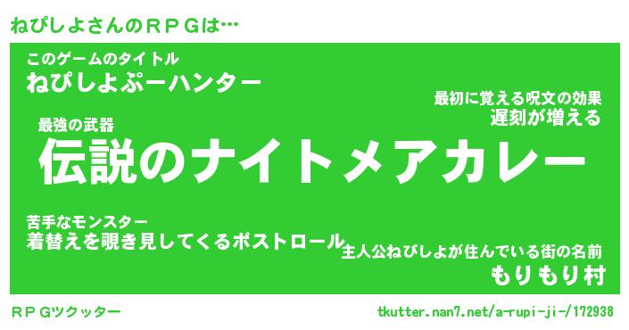 | ヒーロー風カッコイイあだ名 | 『スーパーネピシヨ』『黄金騎士ネピ』 |