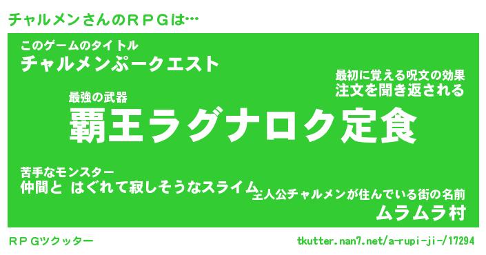 | ファンタジー風あだ名 | 『チャフェル』『エターナルチャルメンー』 |