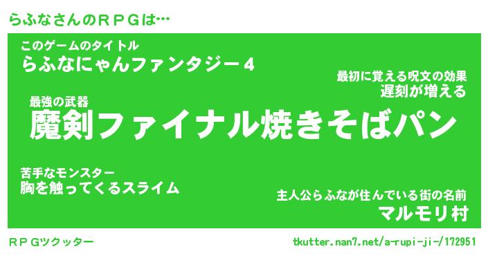 | ファンタジー風あだ名 | 『ラフフェル』『エターナルラフナー』 |