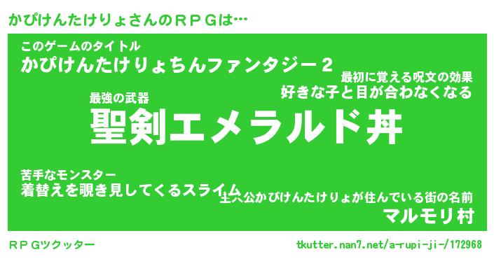 | 胡散臭い通販商品みたいなあだ名 | 『必ず成功する霊験あらたかなお札…その名も「かぴけんたけりょ」』 |