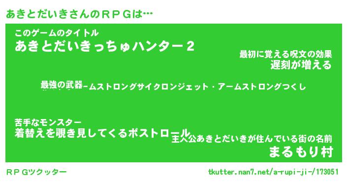 | 男性向けラノベタイトル風あだ名 | 『アキトダイキアートオンライン』 |