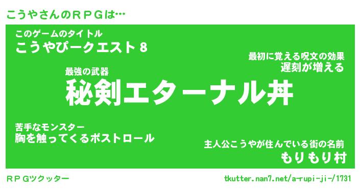 | ファンタジー風あだ名 | 『コウフェル』『エターナルコウヤー』 |