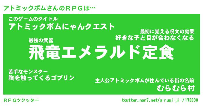 | 男性向けラノベタイトル風あだ名 | 『アトミックボムアートオンライン』 |