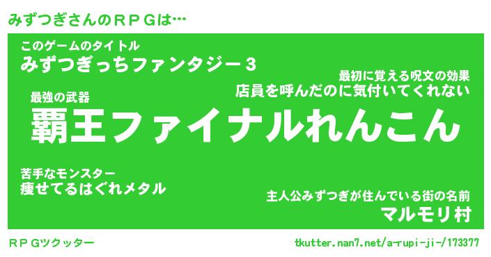 | 胡散臭い通販商品みたいなあだ名 | 『億万長者になれるブレスレット…その名も「みずつぎ」』 |