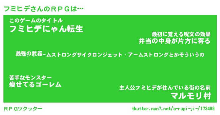 | 男性向けラノベタイトル風あだ名 | 『フミヒデアートオンライン』 |