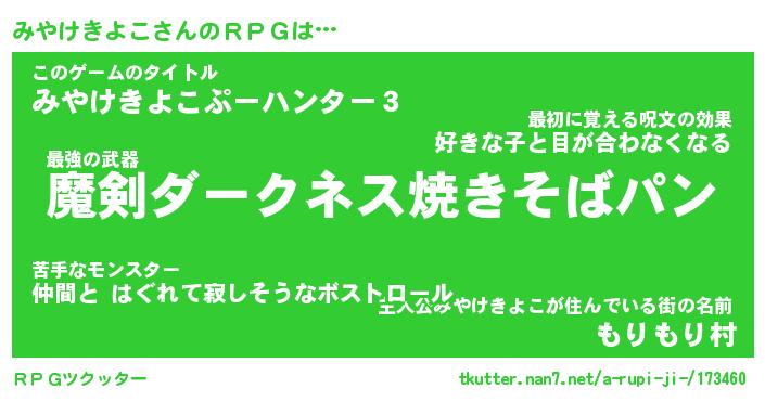 | ヘコむあだ名 | 『みやにゅー』『レバニラ』『みやお』 |